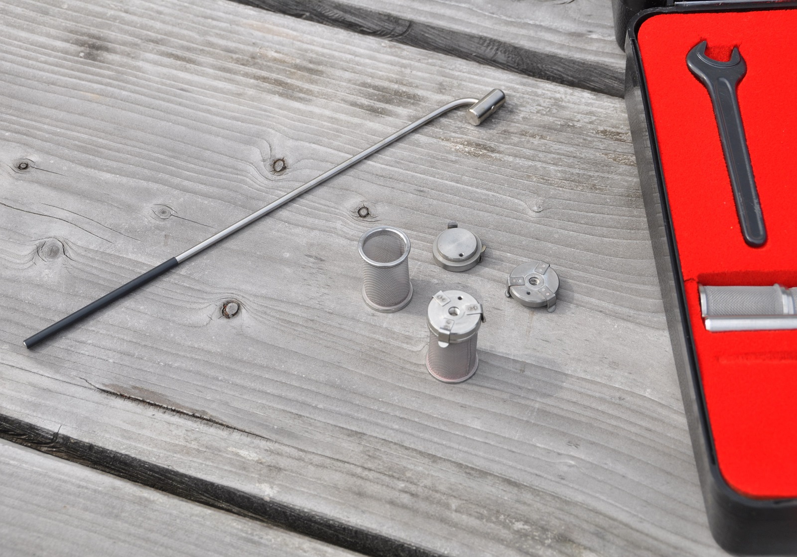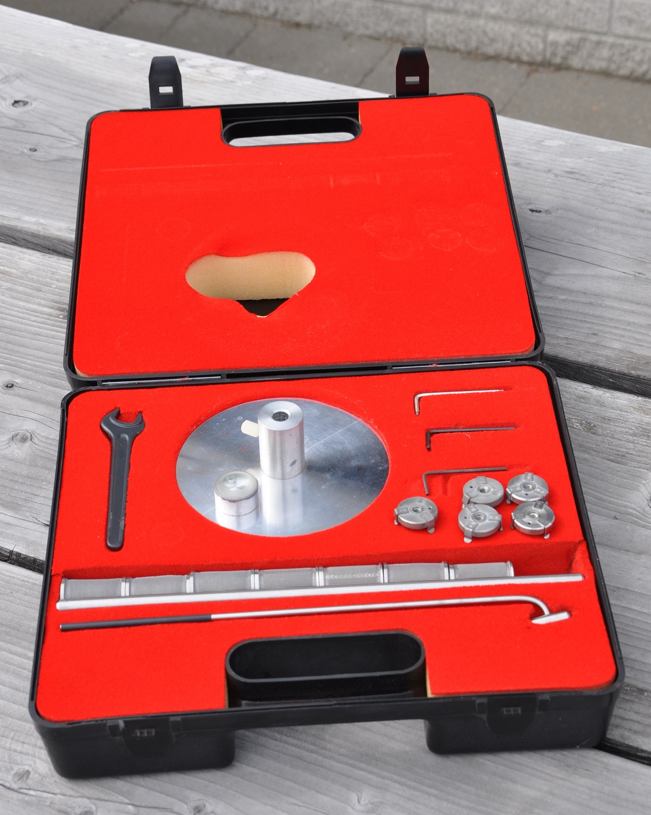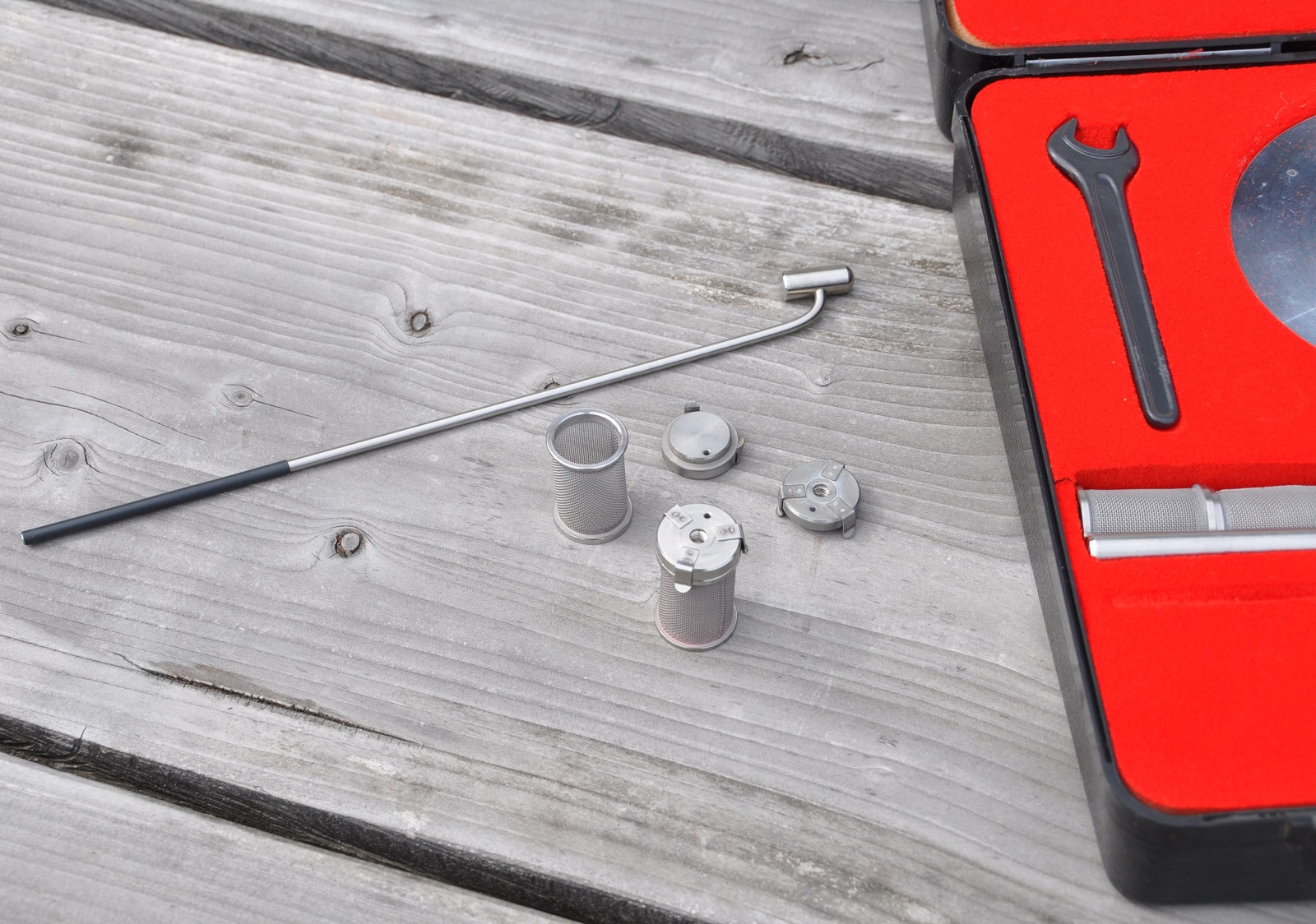 Accessoires voor het meten van oplossingssnelheid van tabletten, in koffertje.