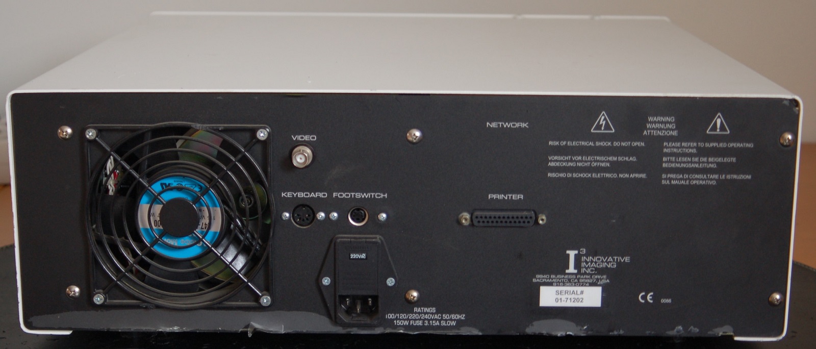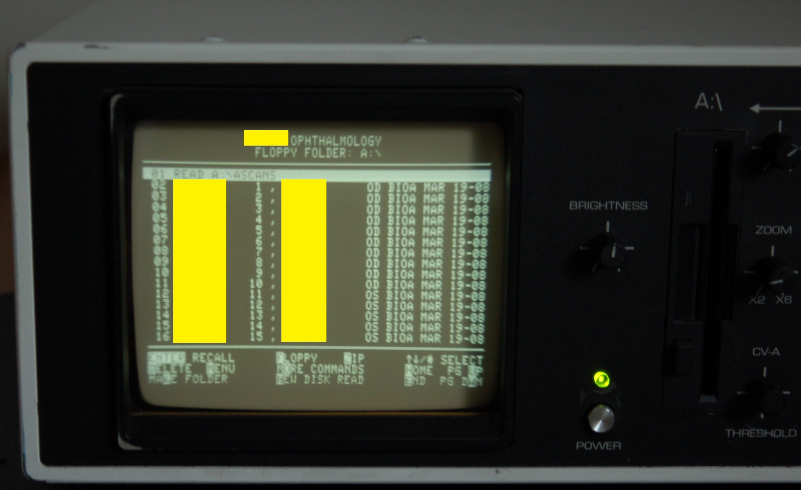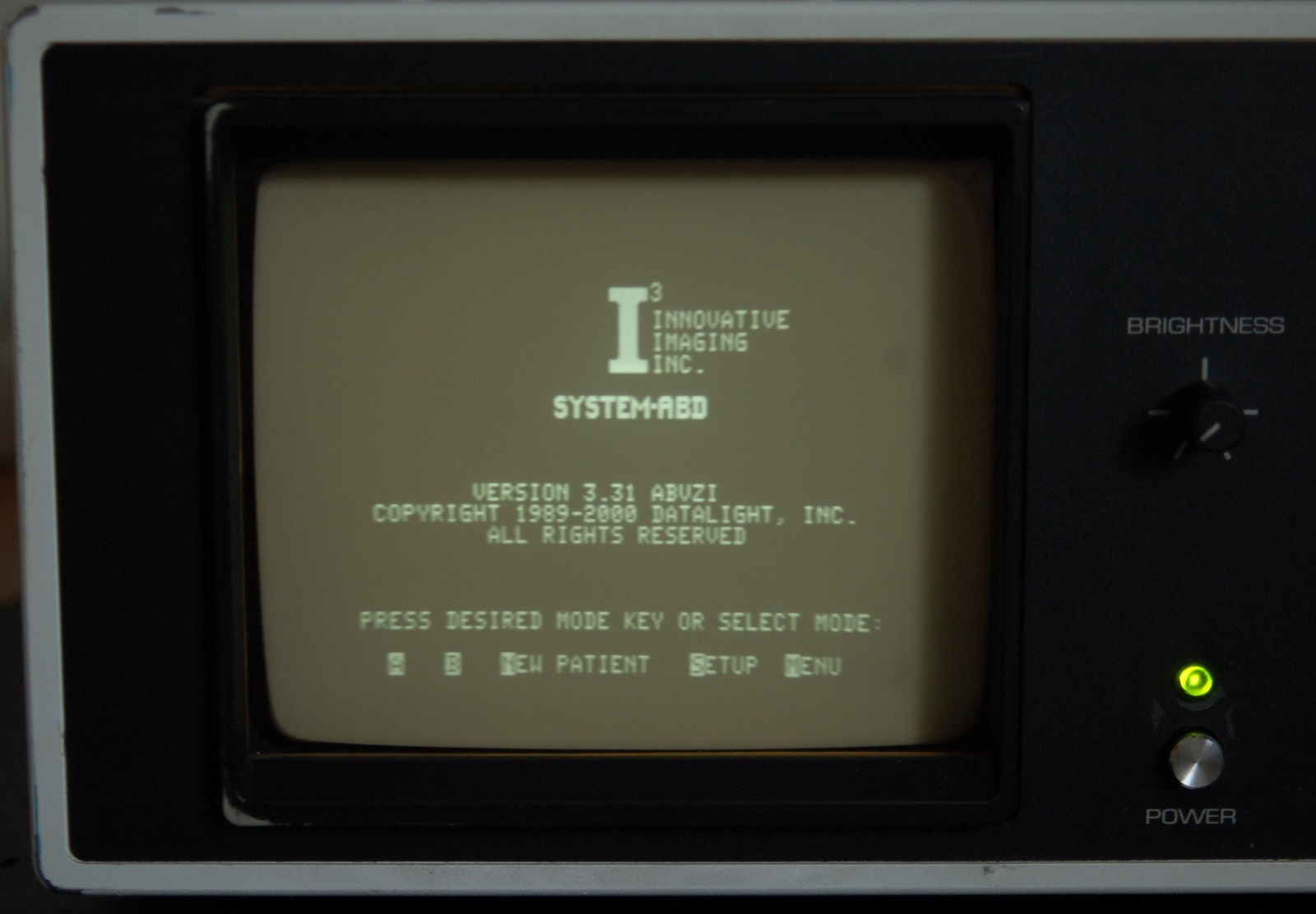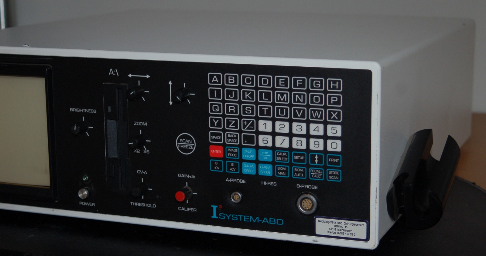 Het I3System-ABD opthalmisch diagnostisch ultrasound system kan worden gebruikt om oogafwijkingen zoals maculadegeneratie vast te stellen. Het systeem start op, lijkt normaal te functioneren en kan patientgegevens van 3.5" diskette (niet meegeleverd) lezen. Omdat er geen probe aanwezig is was het niet mogelijk het apparaat verder te testen.